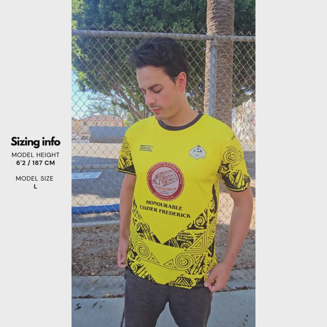 Tailored Design We designed kits with deep input from Kalinago Warriors FC. Beautiful Kalinago tribal patterns throughout the jerseys to bring their pride and identity to be the focus point of the design. "I Atina Kalinago" translated to "I Am Kalinago" on the back of the collar. Patternized K symbol for Kalinago pride in the top back. Finally we have spears showcased on the sleeve for the fighting spirit of the warriors.